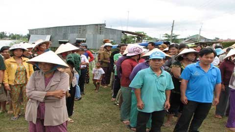 | Người dân xếp hàng chờ quà ủng hộ. |