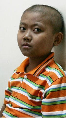 Em Tuấn Vũ với khuân mặt đen sạm vì đợt truyền hóa chất! |
