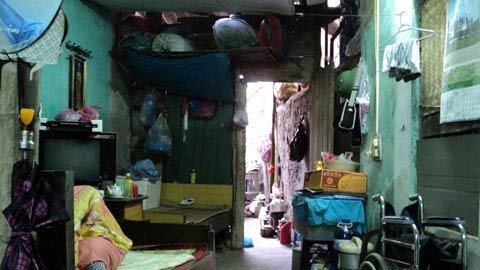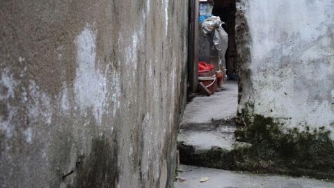 | Ngách đi vào một phòng trọ chỉ rộng chừng 50cm, phải nghiêng người mới lọt qua |