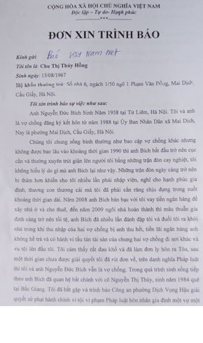 | Đơn trình báo của chị Hồng về cuộc hôn nhân không thể cứu vãn và tố chồng lấy vợ mới khi chưa ly hôn |