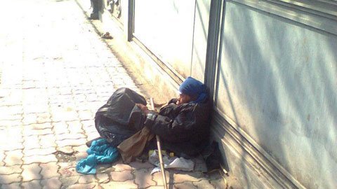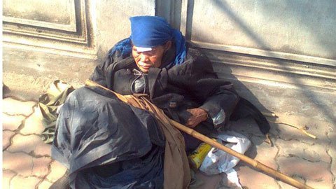 Trong gió rét cụ lết trên đường, lúc nào gặp chỗ kín gió thì dựa. Xin ngoài đường, ăn ngoài đường và ngủ ngoài đường.