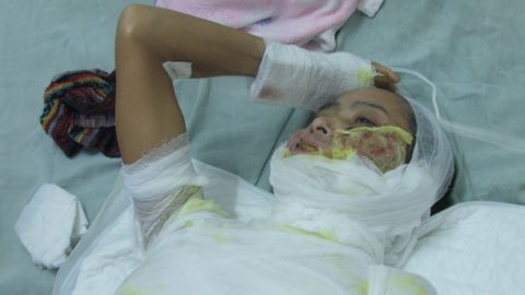 Cô Thìn đã lên Viện Bỏng quốc gia được 3 ngày, người em duy nhất chăm cô phải bỏ viện đi làm, chỉ có người họ hàng rất xa đang chăm cô. Người phụ nữ này chia sẻ: Giờ muốn truyền máu cô Thìn cũng cần tiền, mua thuốc ngoài cũng cần tiền… Thế nhưng nhà cô Thìn không có đâu, cậu em đã đi vay mượn khắp nơi rồi.