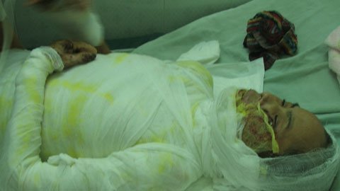 Ngay trong đêm cậu em trai là người thân duy nhất của cô đã đưa cô trở lại viện. Khi chúng tôi đến viện để trò truyện, vừa nói với người họ hàng đang chăm cô được vài câu thì cô Thìn nghe ra là đang có người hỏi chuyện về mình nên cô bật tiếng nói. Chẳng ai ngờ người phụ nữ nằm đó, bị cháy xém nửa người, da thịt bong chóc, cả thân hình được cuộn tròn như một cục bột trắng, đôi tay run rẩy và đầy vết máu bong lại ham nói và phân trần như vậy.
