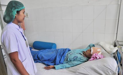 Kể từ ngày bị nạn (28/12/2011) đến nay đã hơn nửa tháng trôi qua, chị Trần Thị Bạch Phượng (SN 1964, trú thôn 3, xã Tiên Lập, Tiên Phước, Quảng Nam) đi mót trấu lẫn tấm gạo để kiếm ăn qua ngày bị trượt chân té ngã và bị dây cu-roa máy xát gạo cuốn vào trong khiến toàn bộ phần da đầu của chị bị lột chỉ còn phần sọ não.