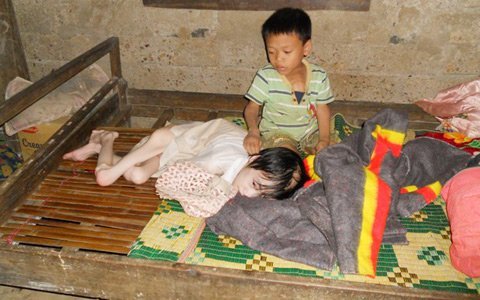 | Những lúc cha mẹ vắng nhà, hai anh em bệnh tật lại phải côi cút bên nhau |