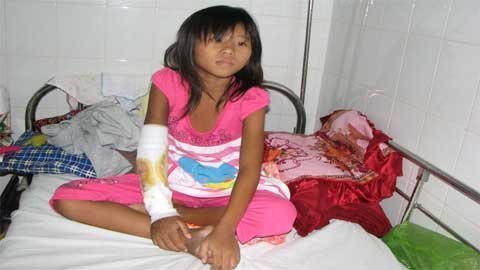 | Bé Phượng bị rắn cạp nia cắn tê liệt một cánh tay |