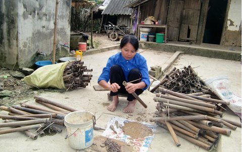 Để có tiền thuốc thang cho chồng và cho người cháu bị tai nạn không đi lại được, hàng ngày, ngoài việc đồng áng, cơm nước, giặt giũ, chị Xuân còn phải đi thả ống giun bẫy lươn để kiếm thêm 30 – 40 ngàn đồng.