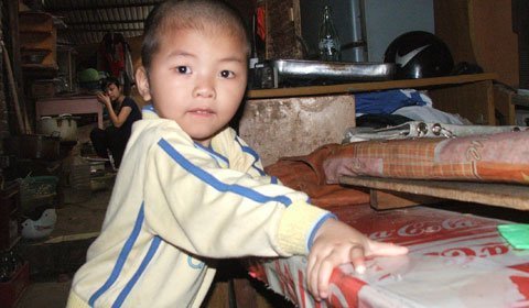 Phạm Đăng Thanh, 4 tuổi, bé mới theo bố mẹ lên Hà Nội chữa câm điếc được gần 1 tháng. Sau lần khám bệnh gần nhất, bố mẹ Thanh kiếm được một việc làm thêm ở đường Phạm Văn Đồng. Họ vừa làm thuê vừa chờ hẹn khám bệnh lần tiếp cho con ở Viện nhi Trung Ương.