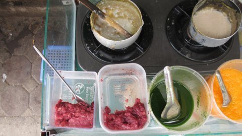 Chẳng cần phải ghé mũi vào ngửi mà chỉ cần đứng gần những hộp thịt, cá và rau xay nhuyễn bày trên mặt quầy cháo dinh dưỡng, người thính mũi có thể nhận thấy mùi hôi do thịt cá đã bị biến chất. Nhìn kỹ hơn, có thể thấy bề mặt của những miếng thịt đã bắt đầu khô lại.