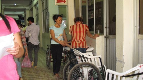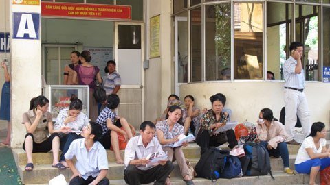 Len lỏi giữa đám đông người nhà bệnh nhân, một phụ nữ mặc áo xanh hết quay sang nói với cặp bố mẹ bên trái vài câu lại quay sang góp lời với bà già bên phải đang vừa bế vừa quạt lấy quạt để cho đứa cháu vài tiếng. Cứ ngỡ là người nhà bệnh nhân nhưng khi lại gần mới biết hóa ra chị ta đang ra sức “mời gọi” người nhà bệnh nhân “Sao phải chờ đợi. Chỉ cần 50.000 đồng là em sắp xếp làm thủ tục khám nhanh cho. Nếu lấy kết quả xét nghiệm nhanh nữa thì cho em thêm mấy chục”.