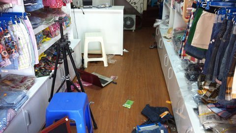 | Cửa hàng của chị Hà khi bị con dâu và con gái bà D đập phá |