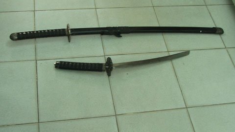 | Vũ khí “tự vệ” của mẹ con bà D. mang ra khi đám "côn đồ" đến nhà nói chuyện… |