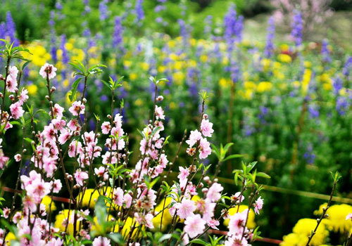 Chồi non lộc biếc và những cánh hoa đã bừng sắc thắm.