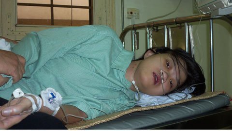 Sau mổ, Ngọc bị tổn thương trên não, cụ thể là xuất huyết não. Chính vì thế bệnh nhân bị liệt nửa người và co giật mạnh mỗi khi có tác động từ bên ngoài.