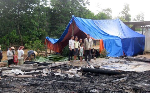 Anh Tiến cho biết, ngay trong chiều xẩy ra cháy, biết được hoàn cảnh bi đát mà gia đình anh đang phải gánh chịu, rất nhiều người trong làng, xã đã đến động viên, giúp sức. Không ai bảo ai, mọi người bàn với nhau, người thì đi mua bạt, người lên đồi chặt cây về để dựng tạm căn lều cho gia đình anh có nơi cứ trú.