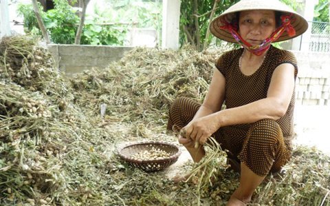 Chúng tôi tìm đến hoàn cảnh của bà Lê Thị Tuyết (64 tuổi, ở xóm Liên Tiến xã Mai Phụ, huyện Lộc Hà, Hà Tĩnh) khi trời gần đứng bóng. Lúc này, người phụ nữ khắc khổ vẫn đang ngồi bên đống lạc mồ hôi nhễ nhãi mà quên cả cơm nước.