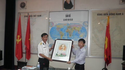 Đại diện của Liên chi hội nhà báo Bộ Thông tin Truyền thông cũng trao tặng các tác phẩm báo chí viết về Trường Sa - trong đó có rất nhiều tác phẩm của Báo VietNamNet cho Bộ Tư lệnh Hải Quân.