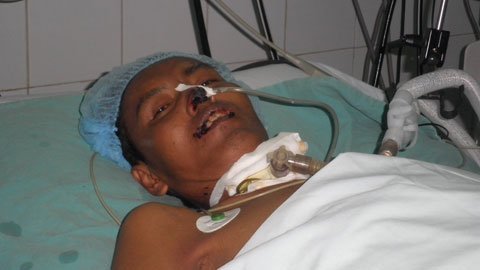 | Nơi giường bệnh, anh Đới vẫn phập phồng… Ngày ra khỏi phòng hồi sức đặc biệt, có lẽ sẽ còn rất lâu! |