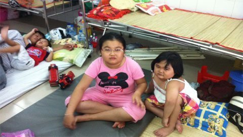 | Bé Minh Thư (bên trái) đang điều trị tại Bệnh viện Nhi Đồng 2, TP.HCM |