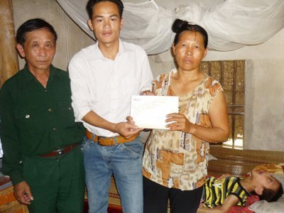 | Đại diện báo VietNamNet trao số tiền 3.650.000 đ cho chị Síu, có sự chứng kiến của đại diện UBND xã Hồng Lộc. |