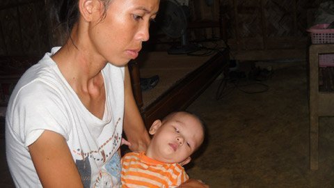 Không có tiền, chị Hương chỉ biết ôm con nhỏ bệnh tật khóc nức nở |