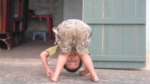 | Một phần động tác khi Thắng loay hoay tự đứng dậy |
