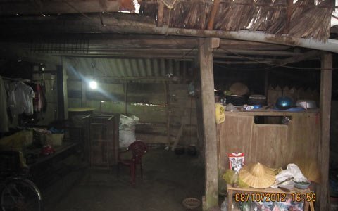 Nhìn ngôi nhà trống hoắc, xiêu vẹo không một vật dụng gì đáng giá. Ngoài chiếc bàn cũ kĩ vừa dùng để tiếp khách, vừa để ăn cơm và vừa để cho các đứa em ngồi học là chiếc giường tồi tàn, chiếu nát tươm mà bấy lâu nay mấy anh em cùng ngủ.