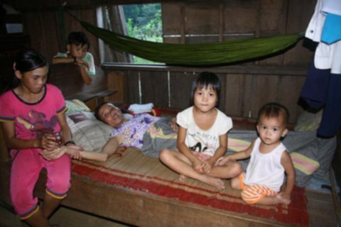 | 4 đứa trẻ bên bàn thờ cha và người mẹ cũng đang nằm chờ chết |
