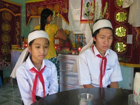 Rời căn nhà hoang lạnh nơi đặt hai bàn thờ của ba và mẹ khói hương nghi ngút. Nhìn hai đứa trẻ bỗng chốc thành mồ côi trên đầu trắng khăn tang cùng lúc cho ba và mẹ, tôi chỉ biết quay mặt để chào từ biệt hai đứa trẻ mà lòng tự hỏi không biết rồi đây hai đứa trẻ sẽ sống ra sao?