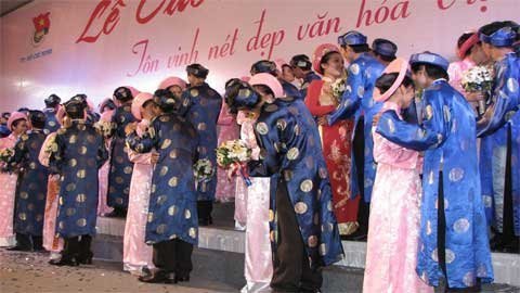 Đám cưới tập thể được tổ chức đúng nghi thức của lễ cưới truyền thống Việt Nam, loại bỏ những nghi thức hủ tục lạc hậu đề cao lối sống tiết kiệm, văn minh.