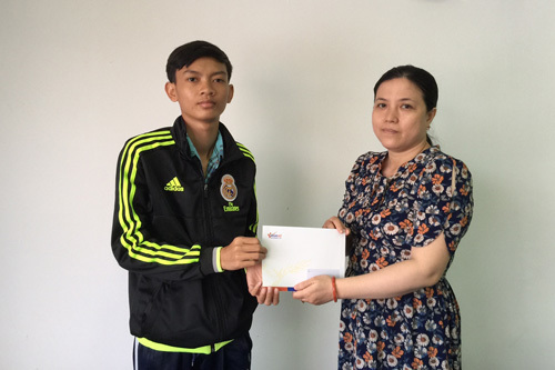 | Đại diện Báo VietNamNet trao quà cho Trần Minh Phúc |