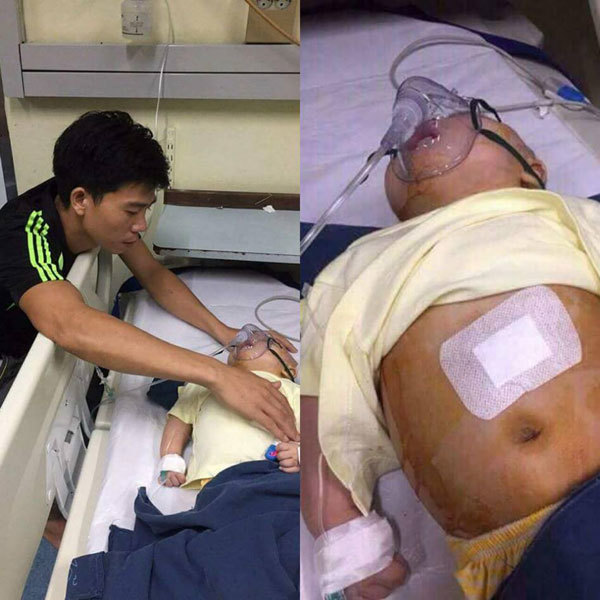 Anh Trung rấm rứt kể: “Mổ 2 lần bác sĩ đã đặt van thông não. Nếu không hợp cái van đó thì cứ phải mổ lần 3. Mong sao ông trời đừng thử thách gia đình chúng tôi thêm nữa. Nhìn con bé mới được mấy tháng mà cơ thể không lành lặn vì vết mổ, khóc ngặt vì đau, người làm bố như tôi chua xót lắm.