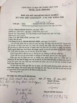 Bé Phạm Hoàng Diễm (7 tuổi ở ấp Vĩnh Khánh, xã Long Khánh, huyện Duyên Hải, tỉnh Trà Vinh) mắc phải căn bệnh bạch cầu cấp (ung thư máu) khiến cha mẹ bé trở nên nghèo túng, bất lực không biết xoay sở ra sao.