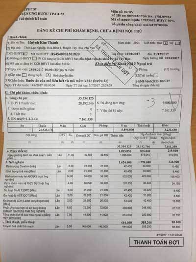 | Dù đã được đóng bảo hiểm nhưng mỗi đợt thanh toán gia đình vẫn phải đóng thêm 4-8 triệu đồng. |