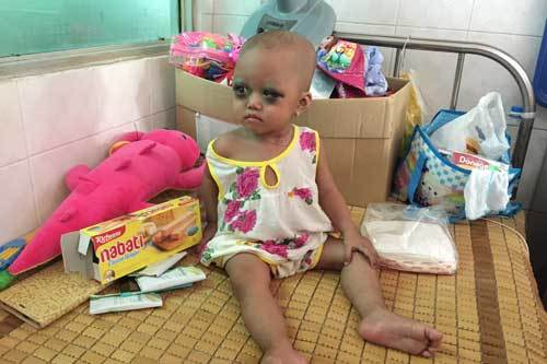 - Mới được hơn một tuổi, bé Nhi đã mắc phải căn bệnh ung thư nguyên bào thần kinh quái ác. Nhìn vào đôi mắt trẻ thơ ấy, vết tím bầm quanh mắt khiến người đối diện ai cũng cảm thấy xót xa.