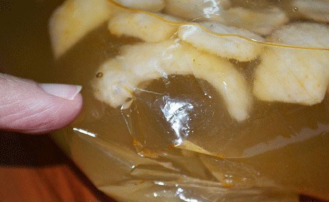 xem thử. Ngày 1/10, bà Dưa bỏ những miếng kẹo oishi vào thau nhôm, đổ nước máy