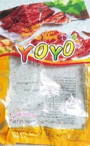 Gói Oishi YoYo của Công ty thực phẩm sạch HTT Hà Nội, địa chỉ tại đường Đắc Sở, Hoài Đức, Hà Nội) tuy có hạn sử dụng 6 tháng, nhưng không có ngày sản xuất. Trên sản phẩm không ghi rõ số nhà và chỉ cần sờ nhẹ lên địa chỉ là chữ bị mờ, bên trong không có mã vạch như các sản phẩm bình thường khác. Trước đây cũng có nghe bàn tán về thực phẩm xuất xứ từ Trung Quốc nở ra đỉa”.
