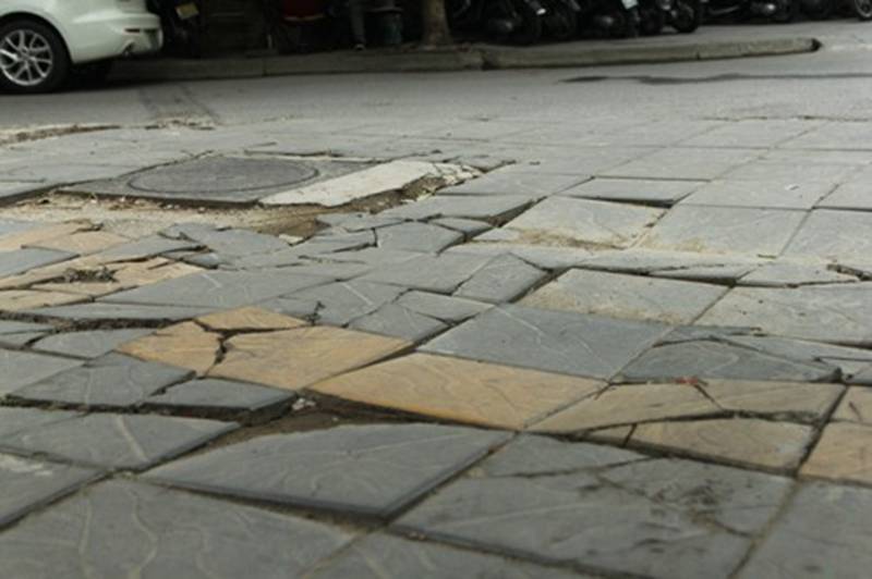 Tuy nhiên, theo quan sát của PV Dân Việt, mặc dù được sử dụng chưa lâu nhưng một số vỉa hè được lát đá tự nhiên đã bắt đầu có dấu hiệu xuống cấp. Cụ thể, một số vỉa hè được lát đá tự nhiên ở quận Hoàn Kiếm, Cầu Giấy, đường Bà Triệu, Thanh Xuân...