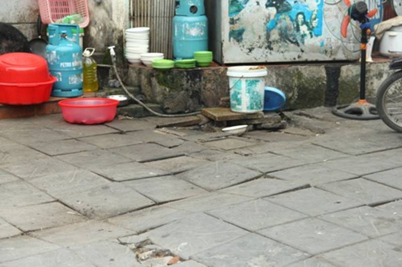 Nhiều viên đá bị vỡ và bong tróc ở đường Trung Kính.