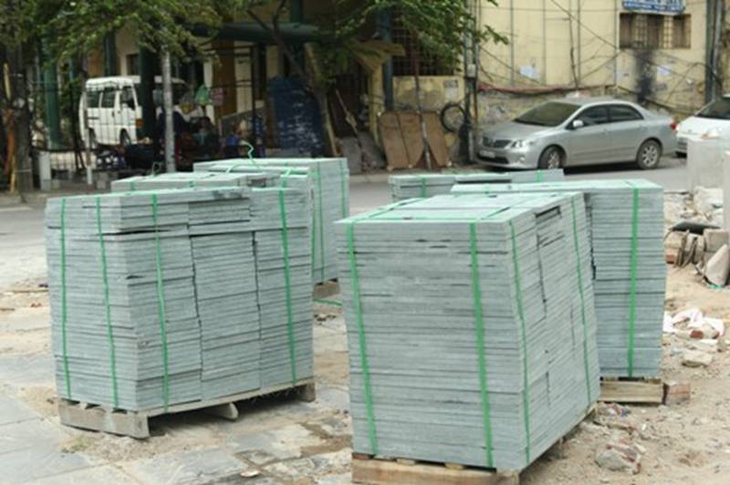 Nhìn thực trạng này, nhiều người không khỏi ngán ngẩm. Theo thông tin được công bố, đá lát đang được sử dụng xẻ từ đá nguyên khối Thanh Hóa, chịu lực tốt và khó vỡ hơn các loại gạch khác.
