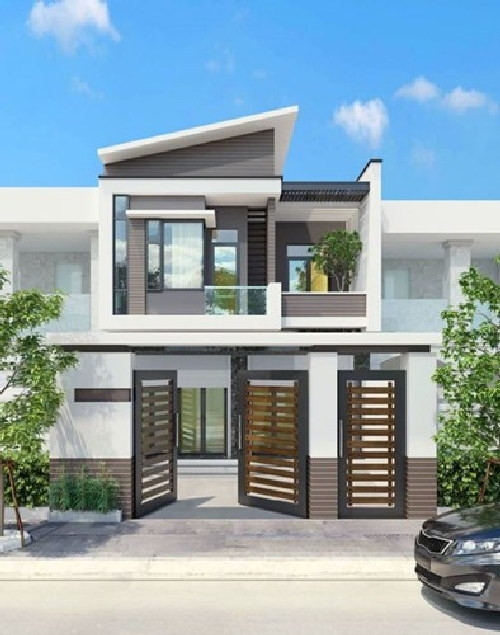 Theo xu hướng hiện đại, nhà phố mái lệch ngày càng được các gia đình trẻ ưa thích. Ảnh: Nhabinhduong.