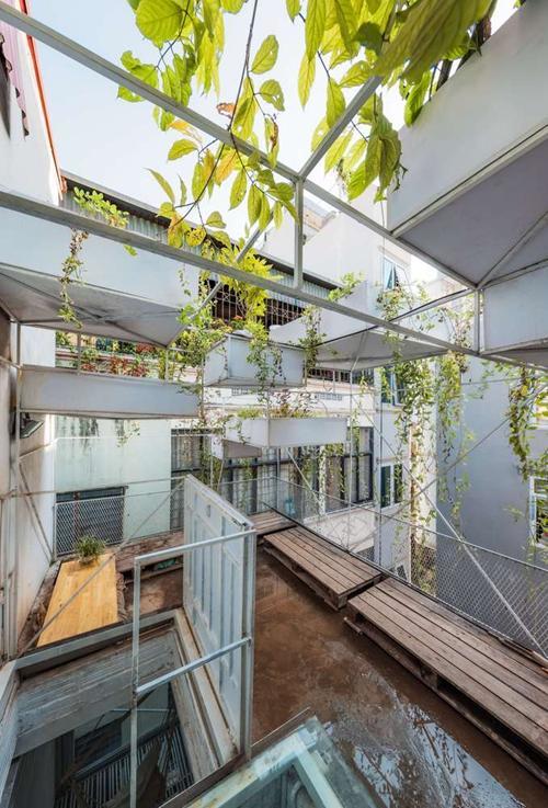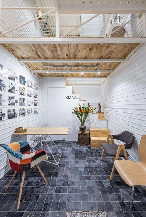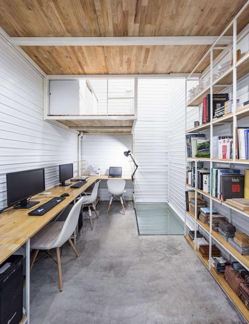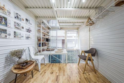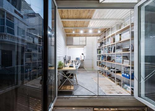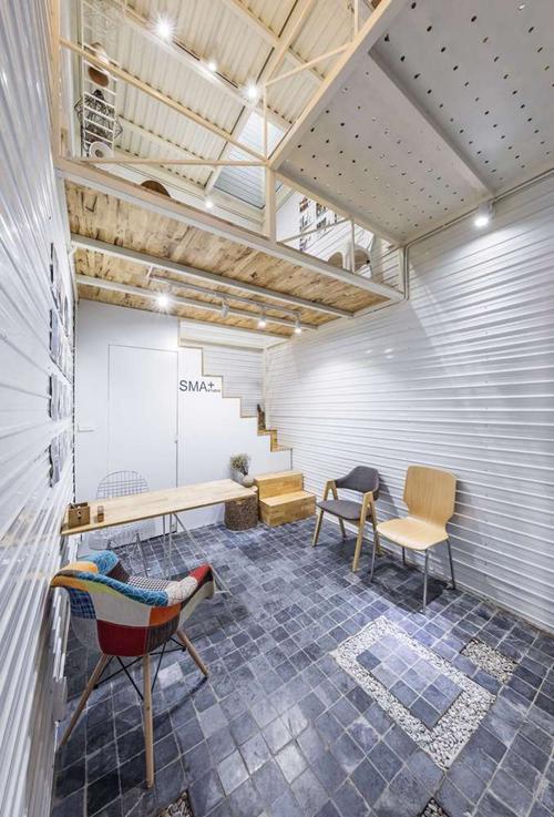 Được xây dựng chỉ từ tôn, sắt thép và kính với diện tích "bằng bàn tay" nhưng ngôi nhà kiêm văn phòng này vẫn thoáng rộng và hiện đại đến không ngờ.