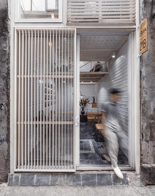 Mặt tiền 2.5 m của ngôi nhà nhìn ra một con hẻm nhỏ, đối diện là hàng xóm. Kích thước siêu nhỏ của khu đất ban đầu gây ra nhiều khó khăn cho việc thiết kế.