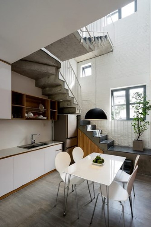 Sáng tạo trong kiến trúc cộng với cách bố trí không gian khoa học đã giúp căn nhà ống dù có địa thế không vuông vức vẫn đẹp hoàn hảo.