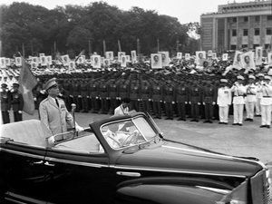 | Đại tướng Võ Nguyên Giáp, Tổng tư lệnh Quân đội Nhân dân Việt Nam duyệt binh trên Quảng trường Ba Đình. Ảnh tư liệu TTXVN |