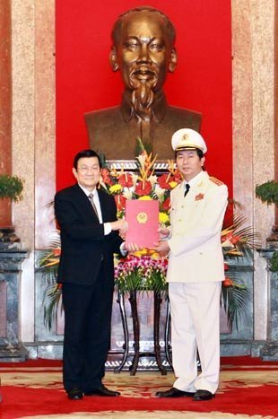 Sáng 29/12, tại Phủ Chủ tịch, Chủ tịch nước Trương Tấn Sang đã trao quyết định thăng quân hàm từ thượng tướng lên đại tướng với Bộ trưởng Công an Trần Đại Quang.