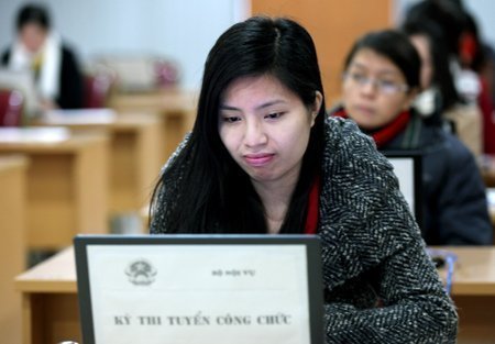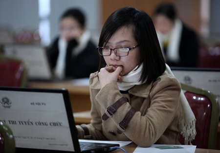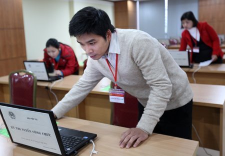 Khác các năm trước, 349 thí sinh ứng thí với hy vọng trở thành công chức Bộ Nội vụ năm nay chỉ làm hai phần kiến thức chung và chuyên ngành theo hình thức thi viết. Các phần trắc nghiệm chuyên ngành, ngoại ngữ và tin học được thi trực tuyến trên máy vi tính. Số lượng chỉ tiêu Bộ tuyển năm nay là 52 người.