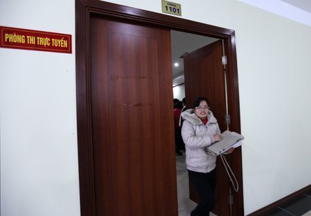 Thí sinh rời phòng sau khi hoàn thành bài thi trực tuyến