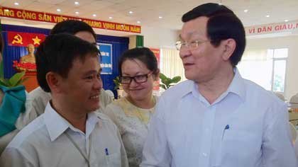 Ngày 14/1, Chủ tịch nước Trương Tấn Sang làm việc với phường Bình Hưng Hòa B (quận Bình Tân) và lãnh đạo TP.HCM về xây dựng đề án “Tiếp tục đổi mới, hoàn thiện hệ thống chính trị từ TƯ đến cơ sở” trong thời gian tới.