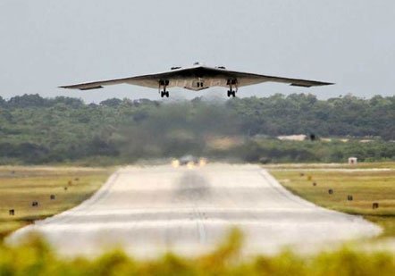 Máy bay ném bom chiến lược B-2 Spirit được coi là lá cờ đầu trong kho vũ khí tấn công tầm xa của Mỹ và hiện vẫn là máy bay ném bom tàng hình tầm xa duy nhất trên thế giới.